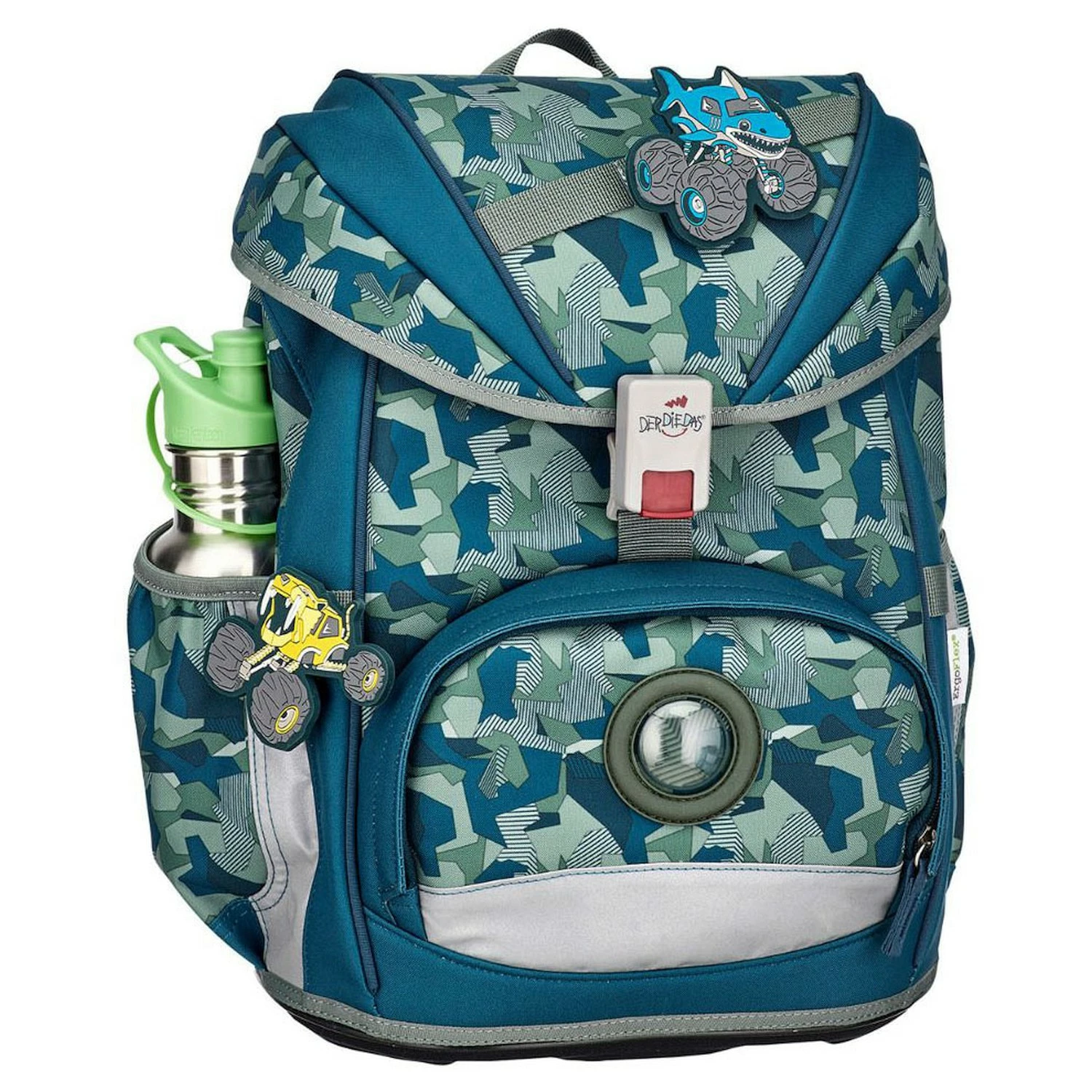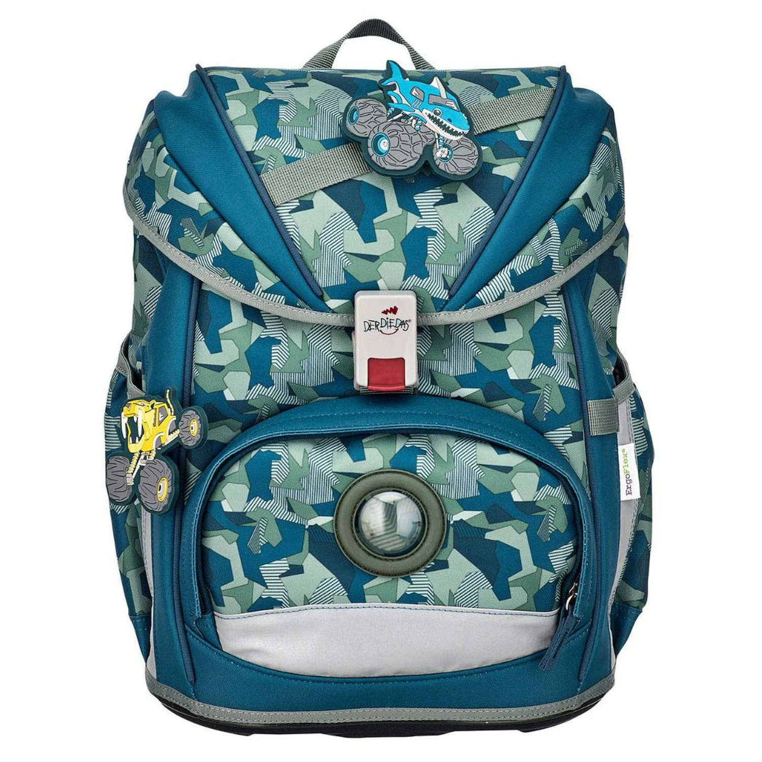 und Rücken. Bei Bedarf abnehmbar. - 7 Buttons zum Anklippen an Schulranzen und Sporttasche –